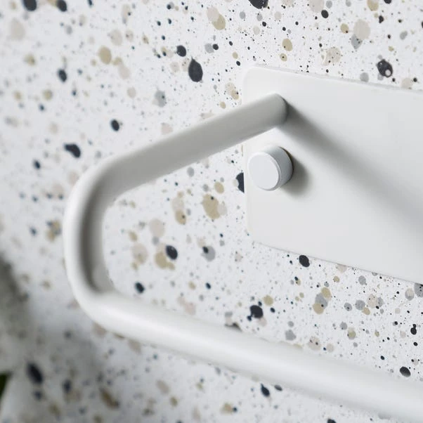 Elevate your bathroom decor with this effortlessly chic toilet roll holder, expertly crafted with sturdy metal construction for long-lasting durability. Featuring a Modern design, this holder adds a touch of minimalist elegance to any space. Its durable finish ensures resilience against everyday wear and tear, while the included wall fixing makes installation a breeze. Plus, with corresponding items available, you can effortlessly coordinate your bathroom accessories for a cohesive look. Upgrade your bathroom with this stylish and functional toilet roll holder today.
